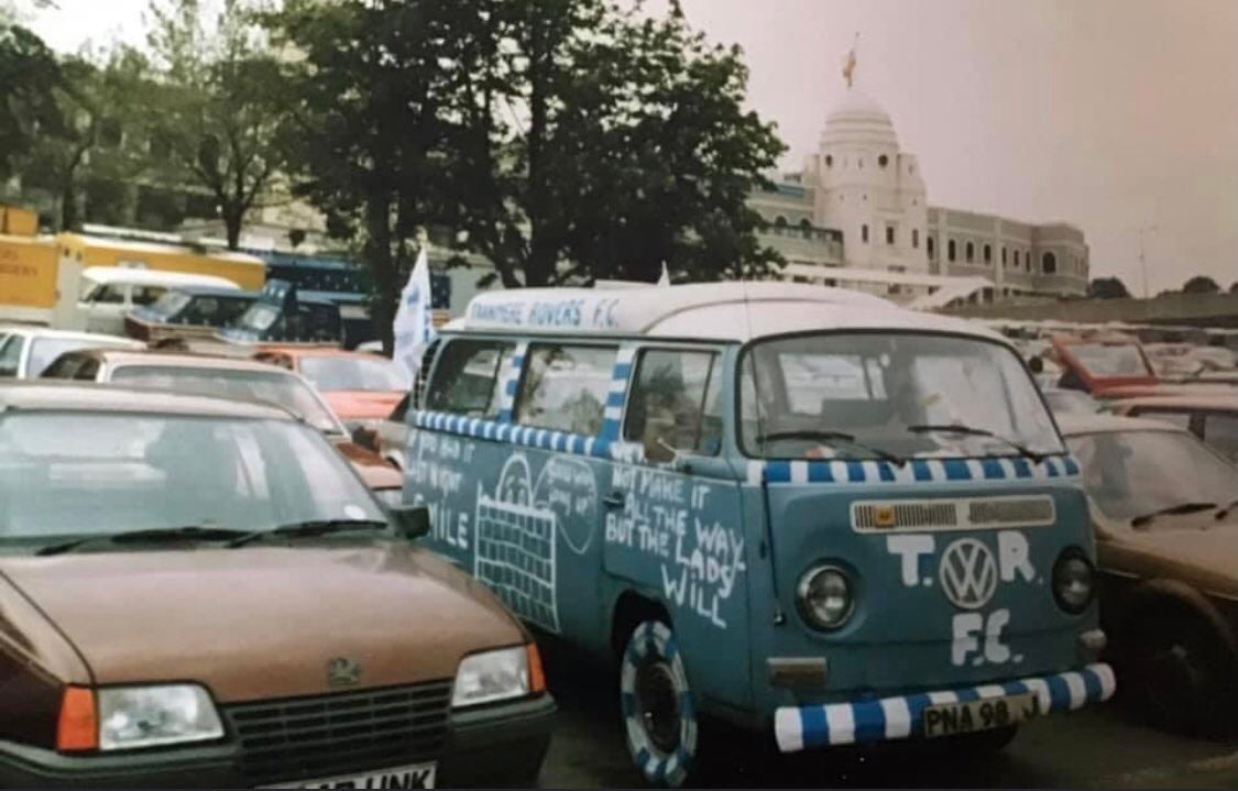 A3 print of the famous minibus from Wembley 91 with local areas on two blocks of flats.